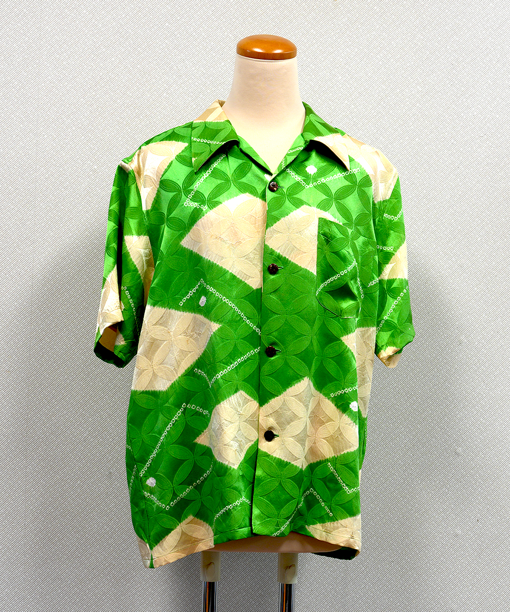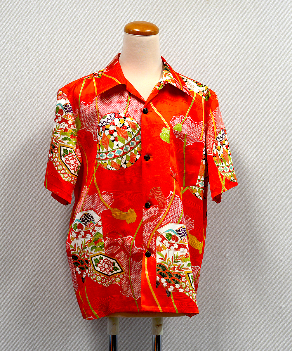呉服店のこだわりをシャツにアロハシャツになる正絹生地は、お仕立てに入る前に湯のし加工を施し、布地の張りや艶、風合いを最良の状態へと整えます。繊細な素材に合わせて温度や圧を調整し、歪みや縮みを均一に調整することで、後の裁断や縫製が美しく進む理想の生地へと仕上げていきます。