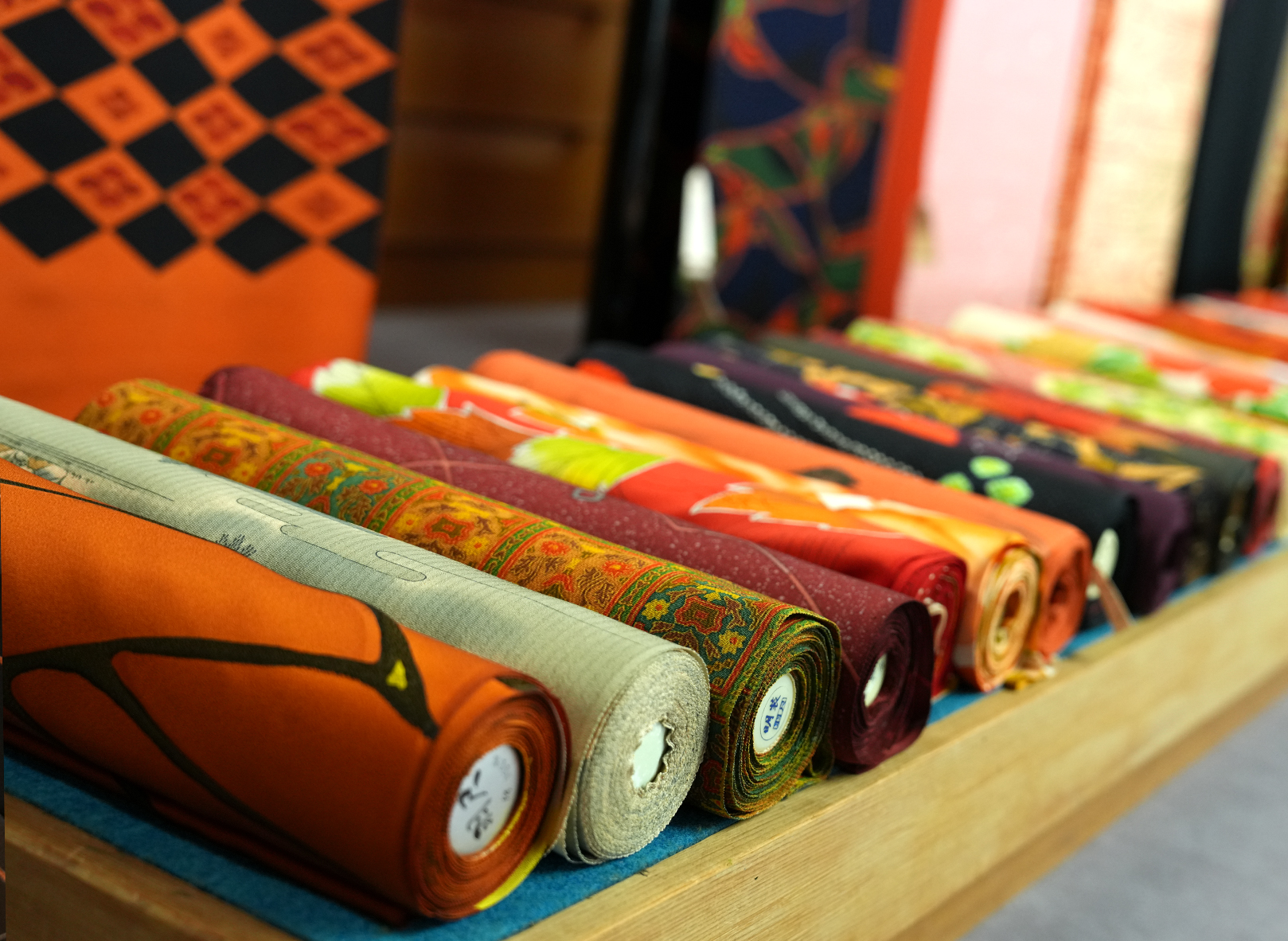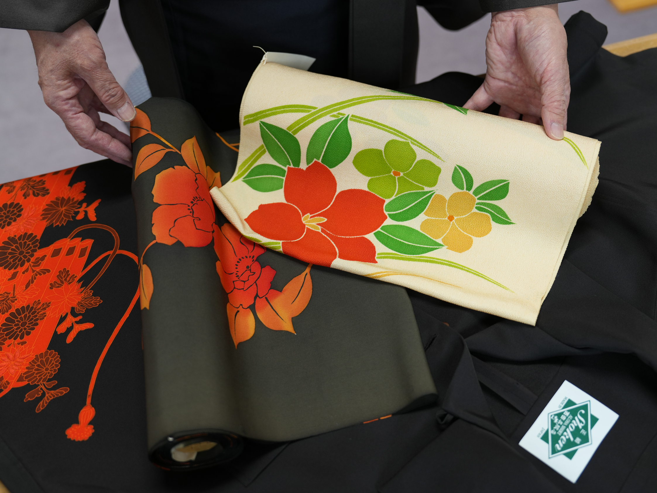 使用する生地は、一点ものの正絹反物、厳選された和布、